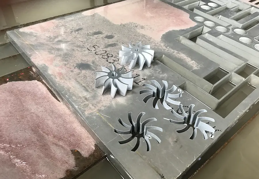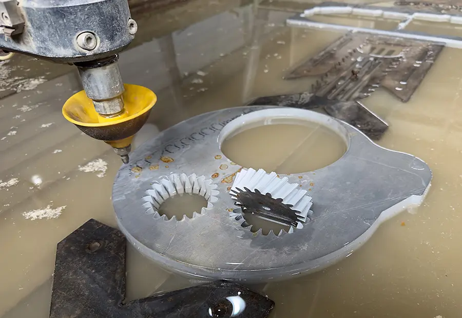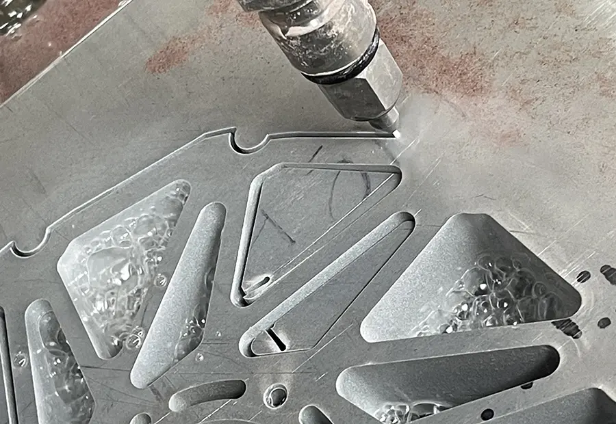 Our company uses a 6-axis rotary waterjet cutter for the demanding processing and complex shaping of hard metals and titanium. The cutting and configuration abilities offered by this system are limitless.